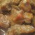 Daha sonra patlıcanların içi doldurulur ve üstü kasarla kapatılır. Hepsi tepsiye dizilir domates sosu üstüne döküldükten sonra 200 derecelik fırına verilir.