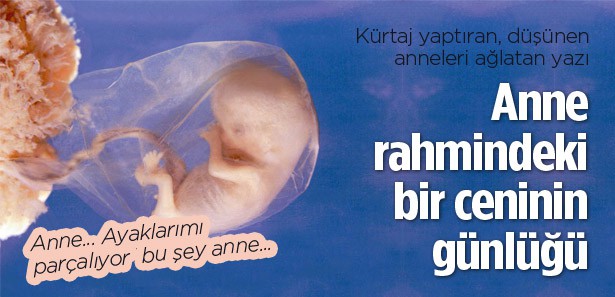 Kürtaj karşıtlarının duygularına tercüman olan ‘bir ceninin günlüğü’nü kimin ne zaman kaleme aldığı bilinmiyor. Yeni Akit gazetesi yazarı Hasan Karakaya’nın da bugünkü köşesinde okurlarıyla paylaştığı “anne rahmindeki bir ceninin günlüğü” başlıklı yazı kürtaj konusunun vicdani boyutuna dikkat çekiyor. İnternetteki forumlarda ve sosyal paylaşım sitelerinde paylaşım rekorları kıran yazının altına yazan yorumlar da dikkat çekiyor. Yazıyı […]